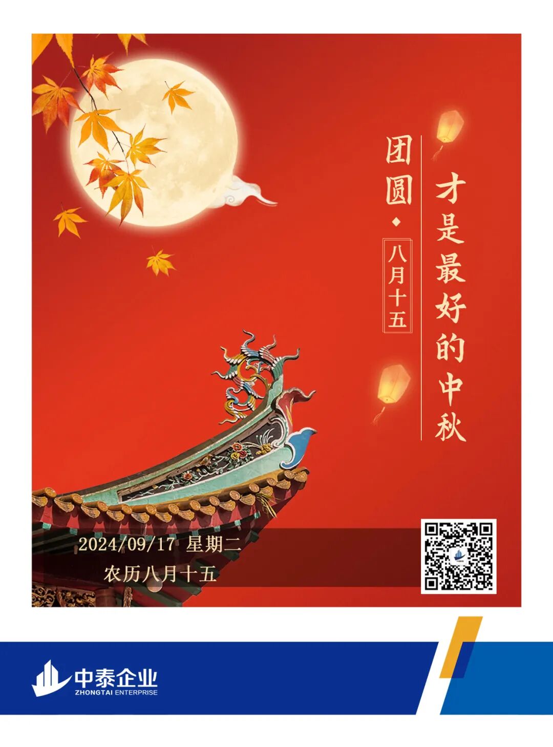 中泰企业祝中秋佳节万事顺遂,阖家团圆!秋云飘逸,月色高洁, 今日中秋,无限相思。 中泰企业祝愿您 万事顺遂,阖家团圆!